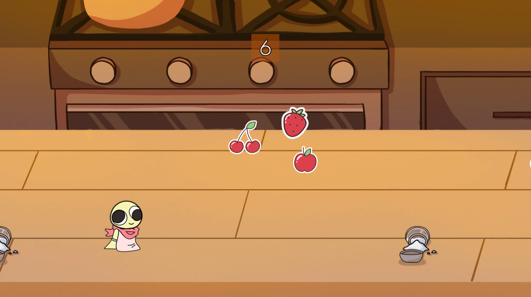 Help Snail the Slug avoid the piles of salt on the kitchen table, while helping her collect fruit!